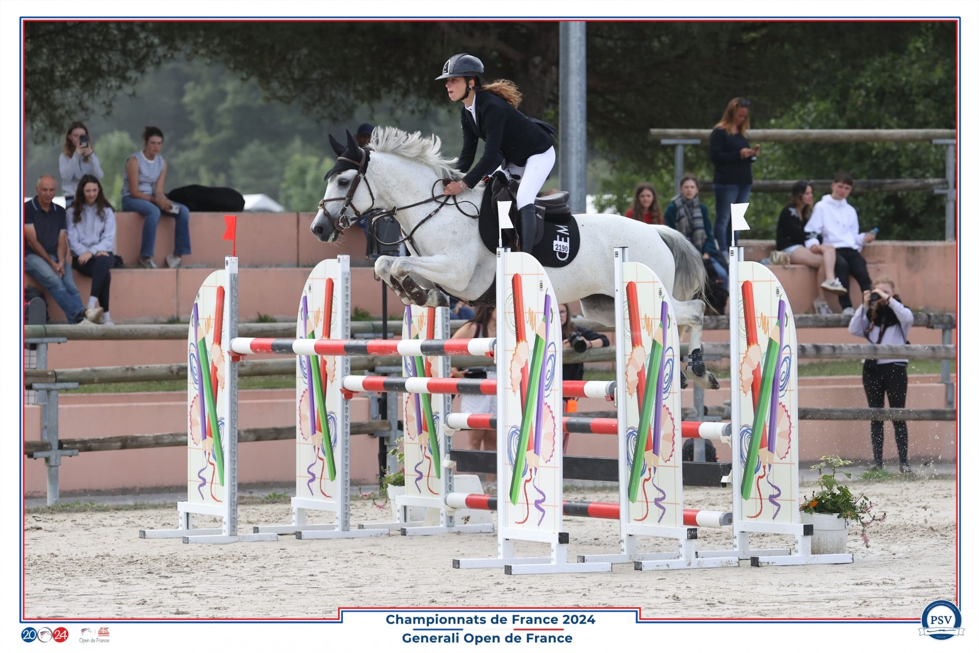 J’ai 3 poneys, Inouna Candy avec qui j’aimerais faire les 7ans cette saison, Une D’avril du Bessey et El Angel de Florys avec lequel je concours en As élite/excellence. J’ai fait quelques CSI, notamment celui de Busto Arzizio où j’ai été 2ème dans l’épreuve d’ouverture avec El Angel de Florys, et j’ai eu la chance d’être sélectionnée pour la Coupe des Nations dans laquelle la France termine 2ème. Aux Championnats de France 2024, j’ai terminé 7ème de l’As élite excellence avec El Angel.
