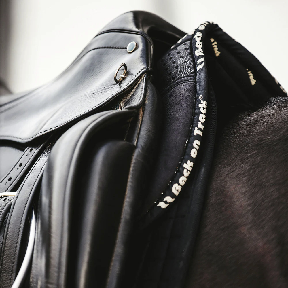 Absorbe les chocs et répartit uniformément le poids et la pression du cavalier.