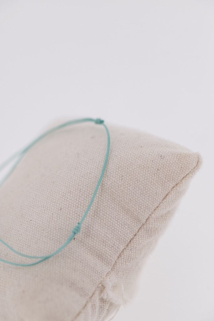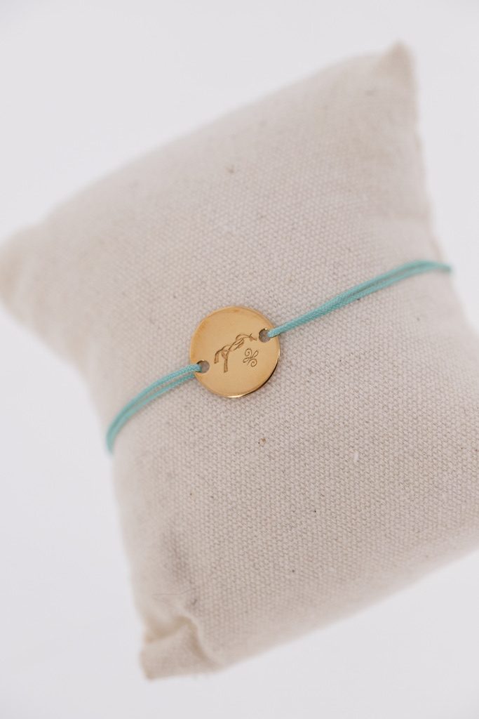 Bracelet PENELOPE Zoé délicatement dessiné avec son cordon turquoise très fin rehaussé par une médaille doré sur lequel on trouve le petit cheval Pénélope incrusté.