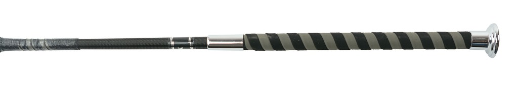 Cravache avec noyau en fibre de verre tressé en nylon. Poignée en nubuck bicolore adhérente, large clapet fermé, capuchon à boutons métalliques.