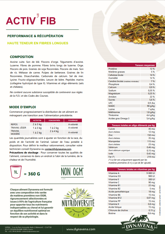 Incorporation de fibres de luzerne en l’état, flocons, fibres de pomme, levure de bière, prébiotiques (FOS)