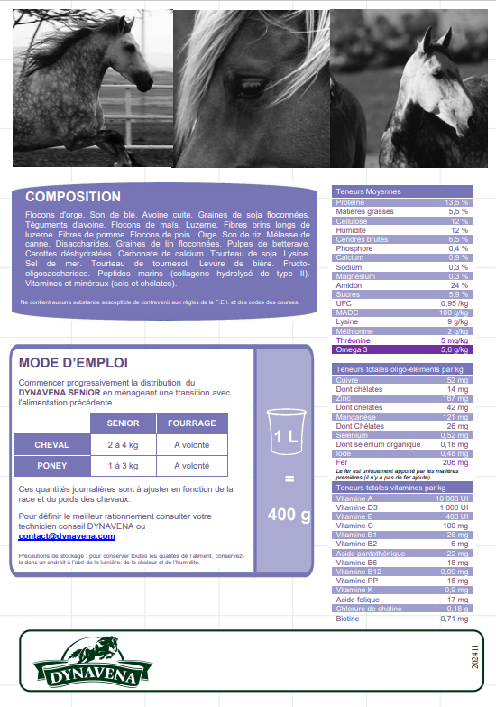 - Destination : Pour chevaux et poneys âgés et sensibles