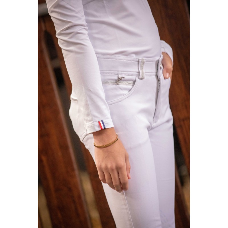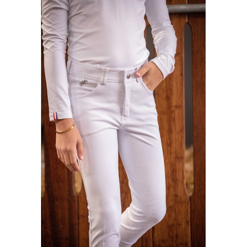 Le modèle Fun adulte fait déjà partie des incontournables de la marque et fait le bonheur de toutes les cavalières. Le voici, disponible en taille enfant dans la gamme EDEN BY PL. De nouvelles tailles d’accord, mais la coupe, elle, reste inchangée : toujours cette taille légèrement basse mais très emboîtante, son tissu stretch tellement confortable qui se porte comme une seconde peau, son effet push-up ultra-féminin et son galon argenté qui rehausse le parfait dessin des poches à l’avant, à l’arrière et sur les passants de ceinture.