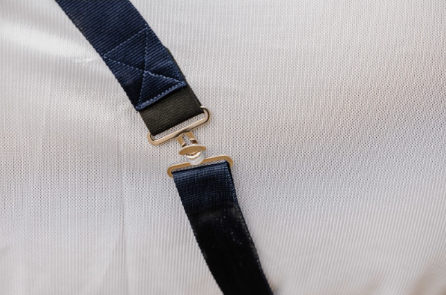 – Fermetures mâle/femelle ajustables et sur sangles croisées montées sur élastique.