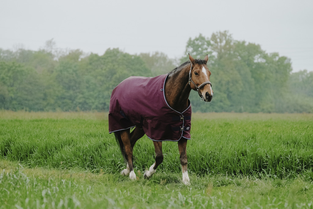 Couverture d’extérieur imperméable et respirante en polyester Ripstop 1200 deniers avec coutures thermo-soudées et doublure nylon. Equipée d’un très grand rabat de queue imperméable avec bande réfléchissante intégrée, d’un pad de garrot en mouton synthétique à l’intérieur de la couverture, de sursangles croisées basses et de courroies de cuisses. Fermeture de poitrail par fixation rapide renforcée par bandes auto-agrippantes, avec indication de la taille sur patch en caoutchouc.