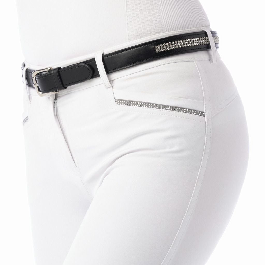 Poches main avant cavalières, décorées de clous brillants sur un passepoil plat en suède contrasté.
