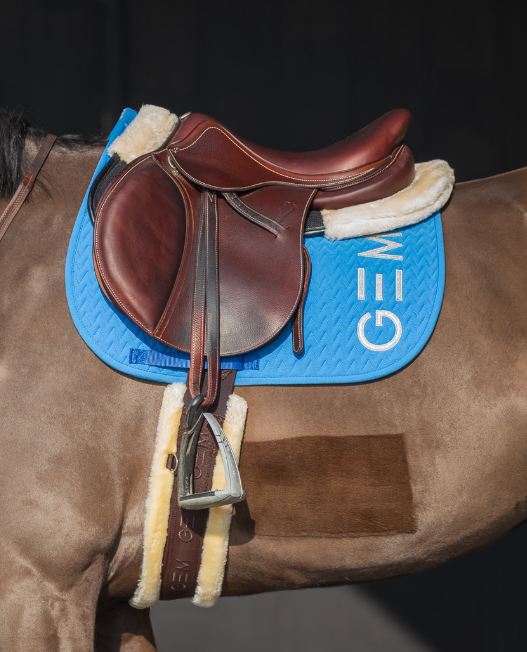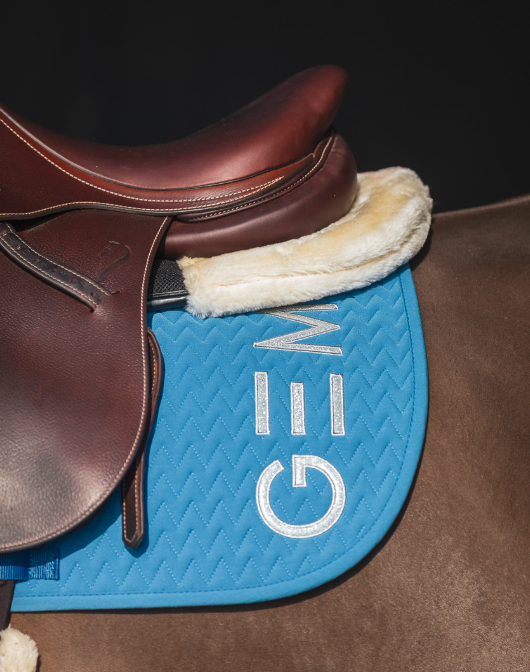 Intérieur du tapis en matière mesh 3D, qui garantit une absorption optimale de la transpiration, et un confort maximal pour le dos de votre cheval.
