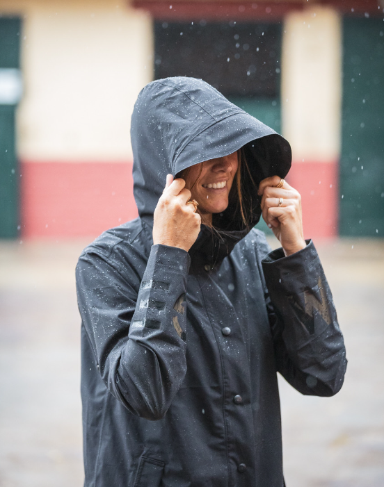 La veste de pluie Noname vous protègera du vent et de la pluie, à pied comme à cheval. Totalement déperlante, sa matière légère ne vous transformera pas votre séance de mise en selle en séance de sudation totale : notre veste de pluie a été pensée pour être aérée. On aime ses détails GEM sur les manches, au dos, et sa grande capuche avec visière nous permet d’affronter toutes les intempéries.