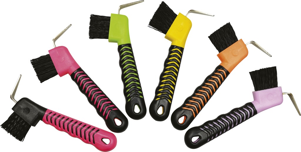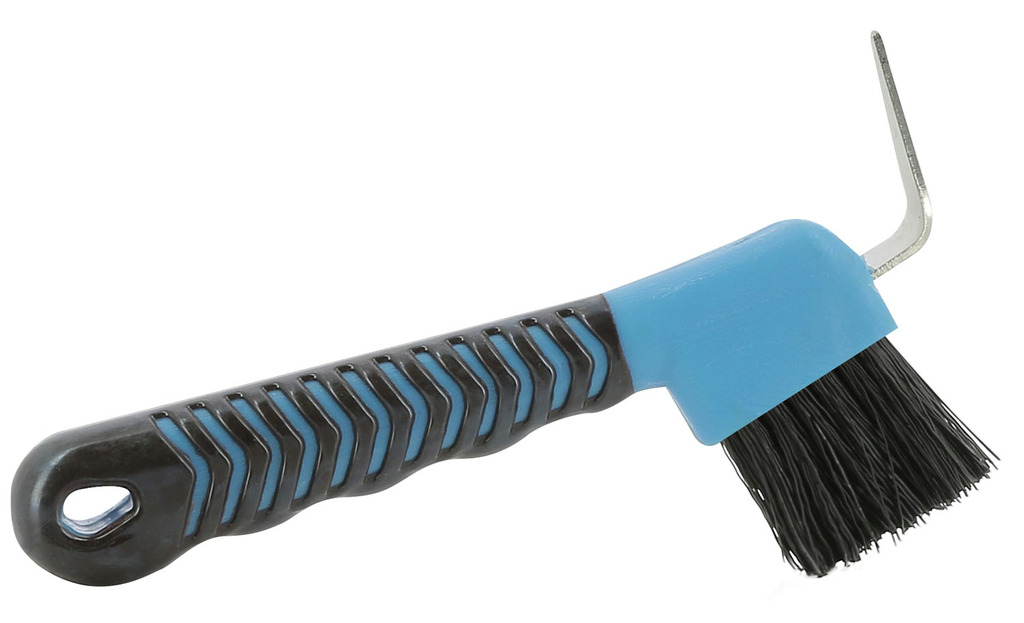 Cure-pieds brosse en plastique avec manche recouvert P.V.C. antidérapant.