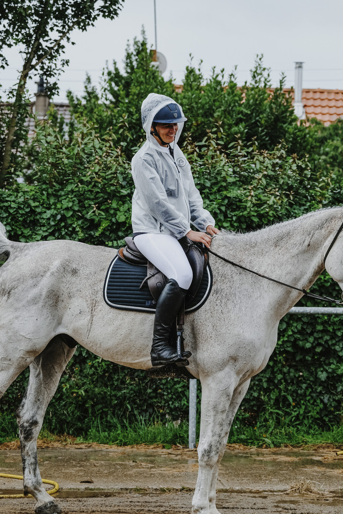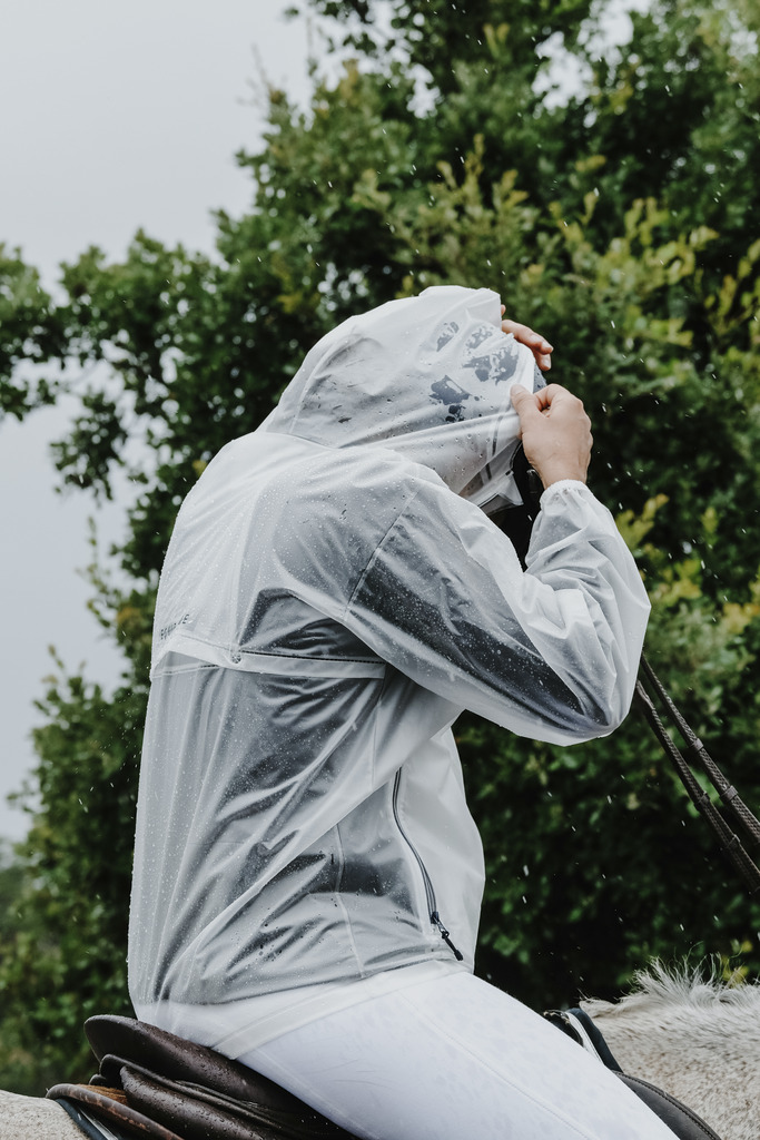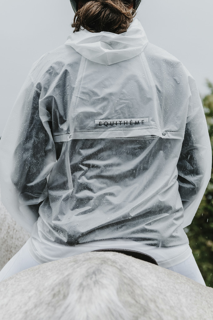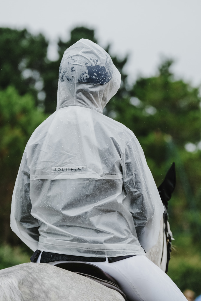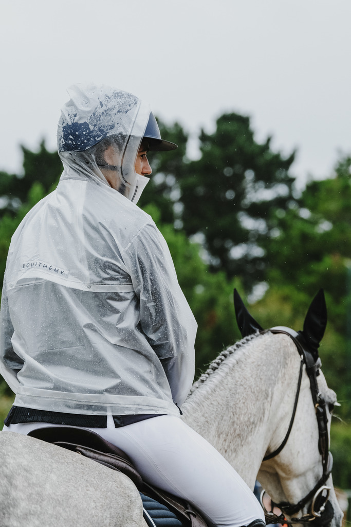 Imperméable transparent adapté à la pratique de l’équitation par temps de pluie.