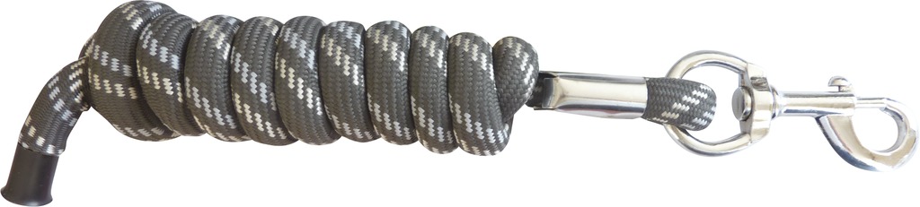 Haute résistance, longe en polypropylène souple diamètre 17 mm, avec agrafe métal et mousqueton tournant 12 cm en zinc massif.