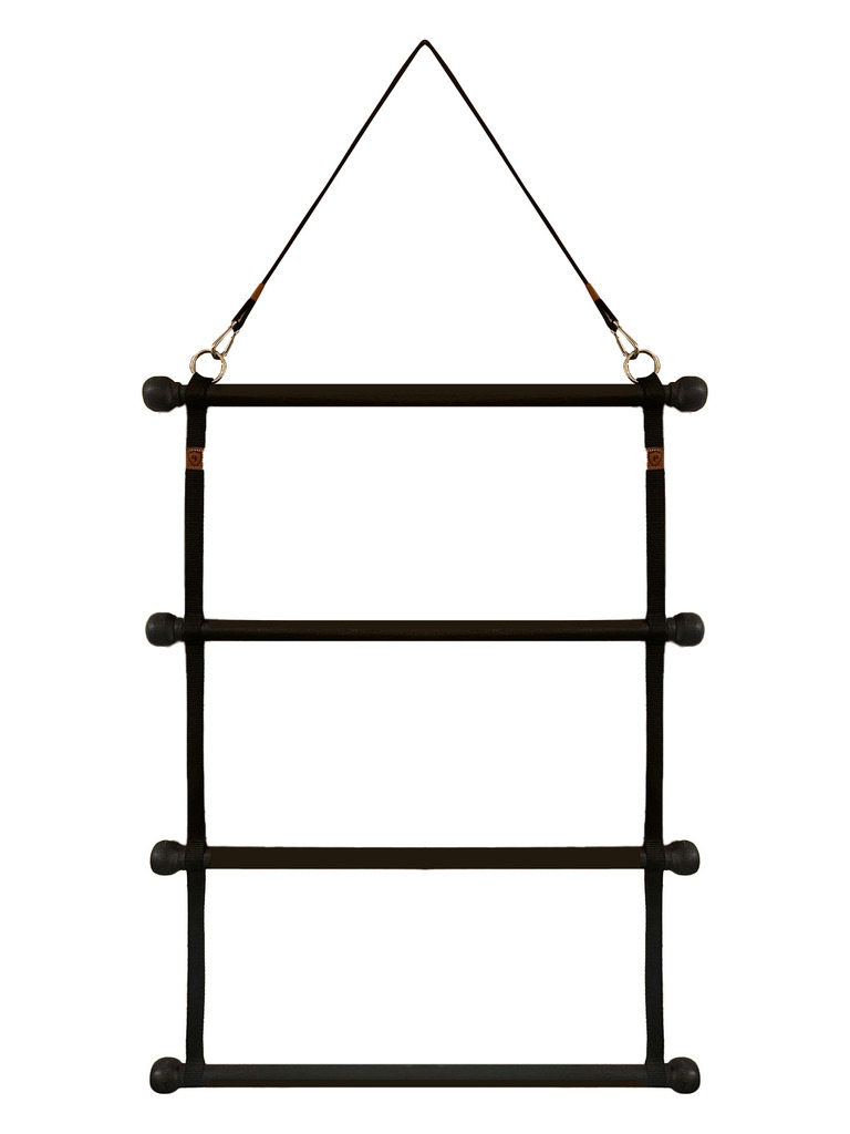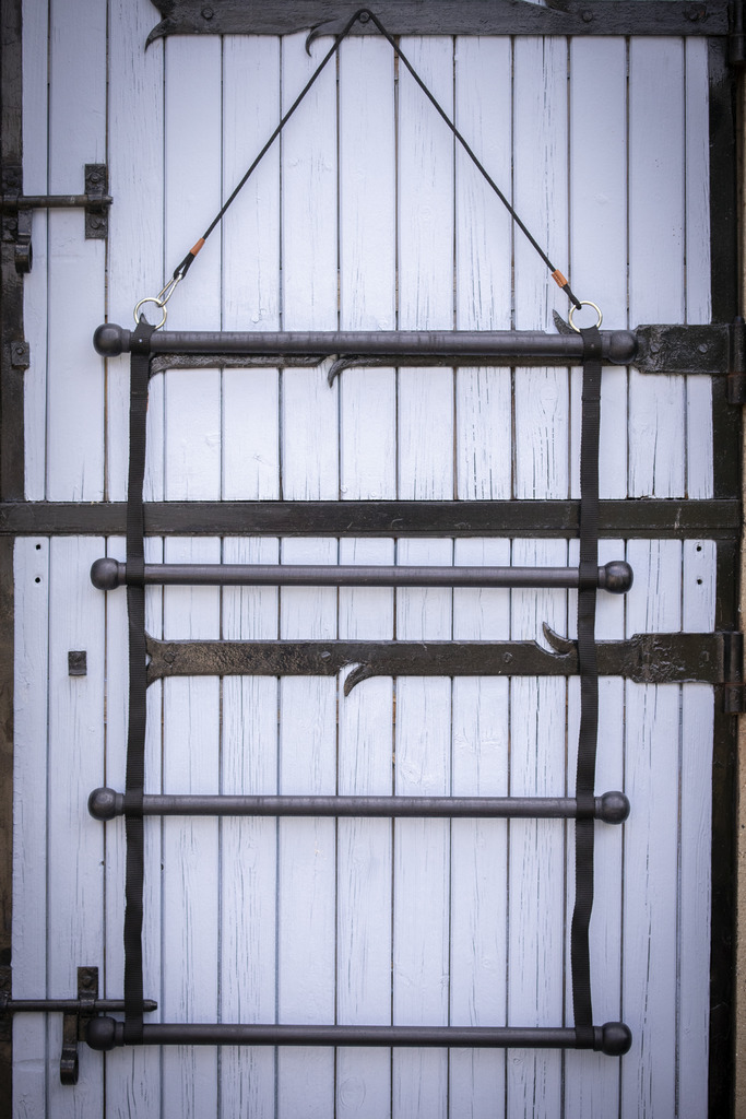 Il permet, sur quatre niveaux différents, de suspendre, à loisir, des tapis de selle, couvre-reins, chemises ou couvertures … Il s’accroche un peu partout grâce à sa lanière amovible, que ce soir aux écuries ou en concours. Très solide, il est fabriqué dans un bois très chic et un nylon particulièrement résistant.
