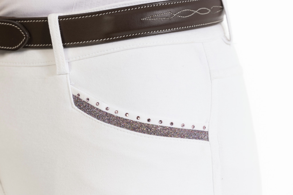 Composé à 95% de coton organique, ce pantalon répond à notre label GREEN IMPACT naturel. Les strass et le galon pailleté apportent un petite touche d’éclat.