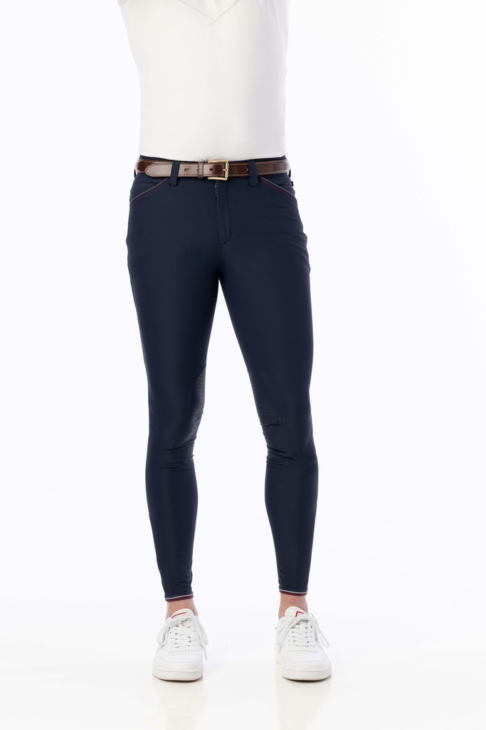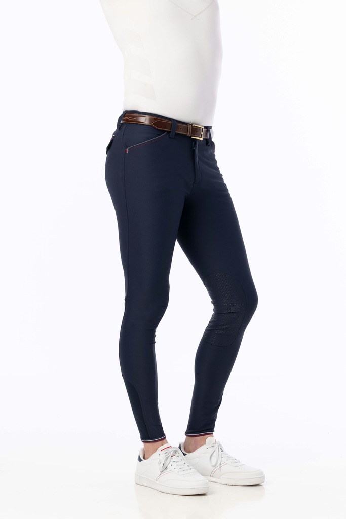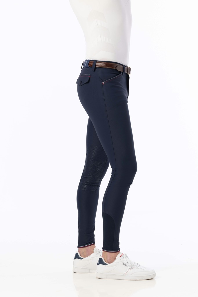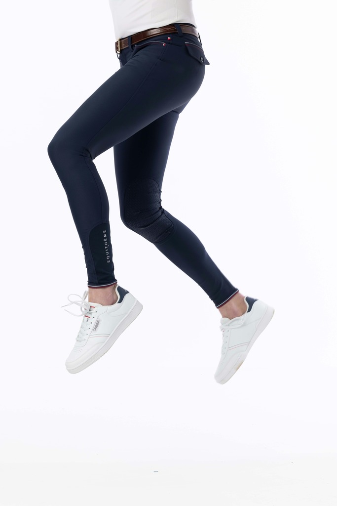 Un pantalon en tissu technique assorti à la collection French Touch.