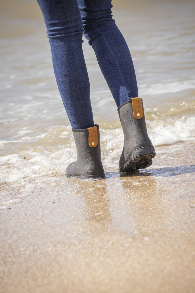 Boots de pluie imperméables « Lulu » Pénélope. Ce modèle est la version basse des bottes « Lola ». Elles sont idéales pour aller partout, par tous les temps et garder les pieds au sec aux écuries comme en concours ! Les boots « Lulu » s’enfilent en un clin d’œil grâce à leur chaussant parfait qui retient bien le pied ! Fabriquées dans un caoutchouc souple et confortable, elles sont très résistantes et s’entretiennent facilement avec un simple jet d’eau. Côté look, elles sont disponibles en noir et elles ont une petite patte en similicuir à cheval sur le haut de la boots, à l’arrière avec le logo Pénélope embossé.