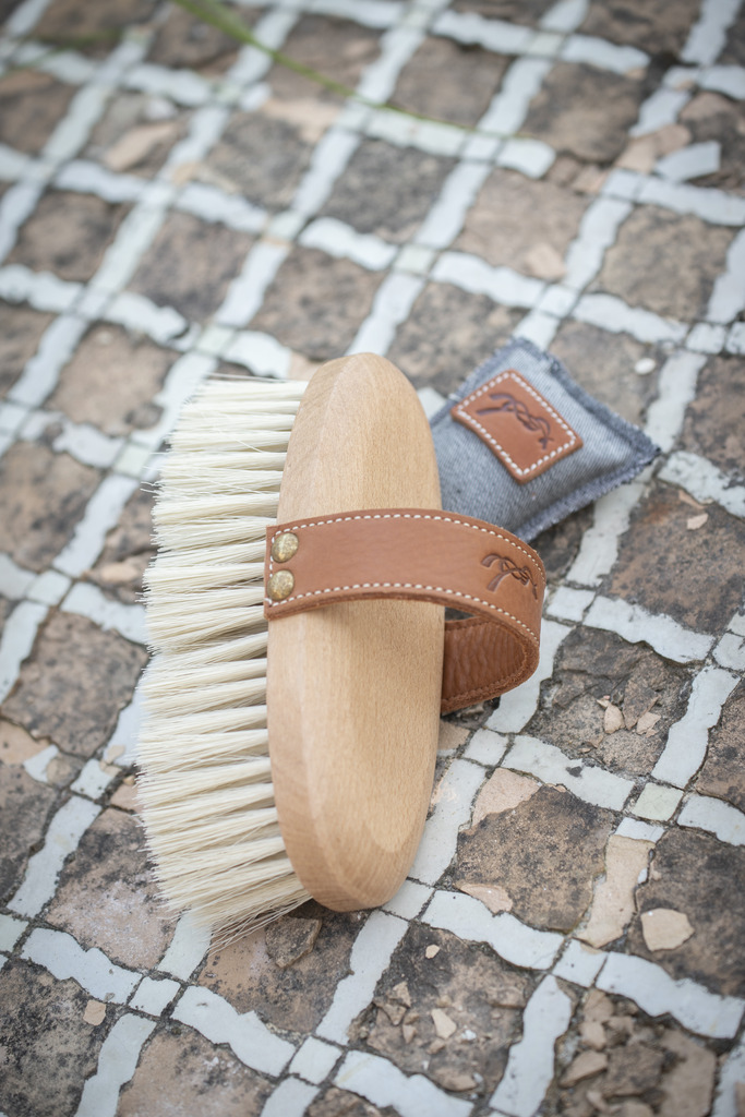 Une très belle brosse qui va donner un maximum de style à votre sac de pansage. Cette brosse douce Pénélope est dotée d’une poignée en cuir pour une bonne prise en main et pour un pansage précis ! Ses poils très doux permettent de brosser les zones les plus sensibles de votre cheval. On retrouve le logo Pénélope embossé sur la poignée en cuir.