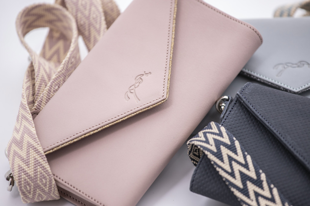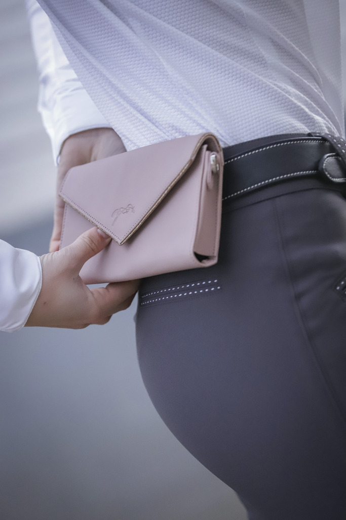 Pochette pour téléphone en cuir à accrocher sur la ceinture ou à porter en bandoulière. Ultra pratique pour emporter son téléphone portable partout avec soir. Il s’accroche à la ceinture grâce à un système de patte avec des pressions ou se porte en bandoulière grâce à une jolie lanière large et plate aux motifs chevrons. Elle se ferme grâce à un bouton pression placé sous un rabat en V et embossé du logo Pénélope. Il y a aussi un passepoil pailleté assorti à chaque coloris et qui réhausse le rabat en V.