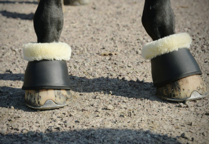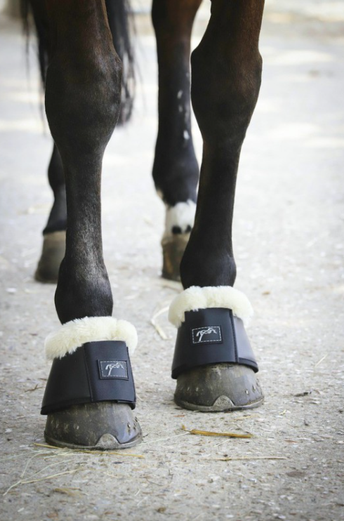 Cloche Pénélope en polyuréthane, doublé de néoprène. Bord montant recouvert de mouton synthétique. Fermeture par bande auto-agrippante.