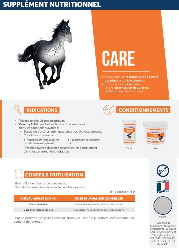Reverdy Care est un complément nutritionnel sous forme de poudre pour chevaux.