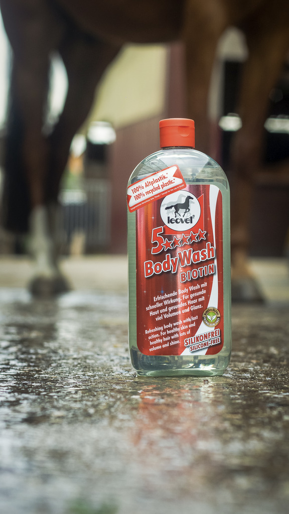 Application : Mélanger un peu de Body Wash avec de l’eau dans un seau ou bien humidifier le poil et shampooiner. Laisser agir quelques instants et rincer à l’eau.