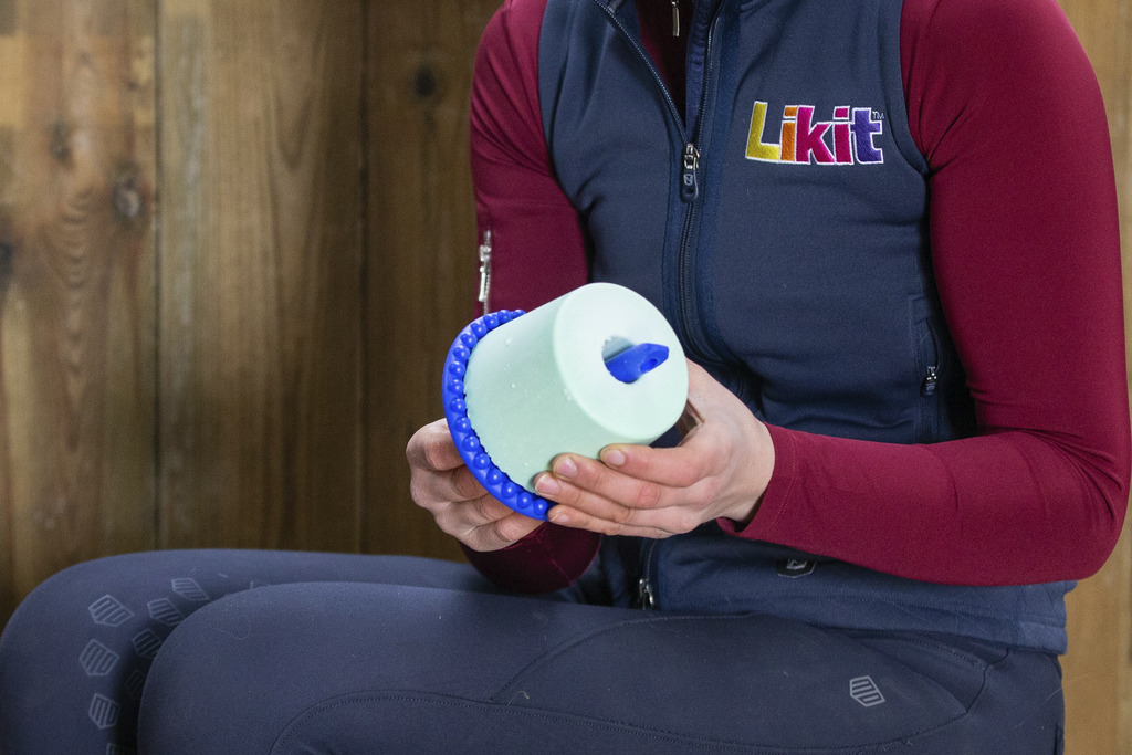 Support Likit à accrocher dans le box pour amuser votre cheval. A utiliser avec 1 Likit (vendu séparément). Se recharge.