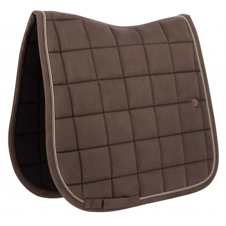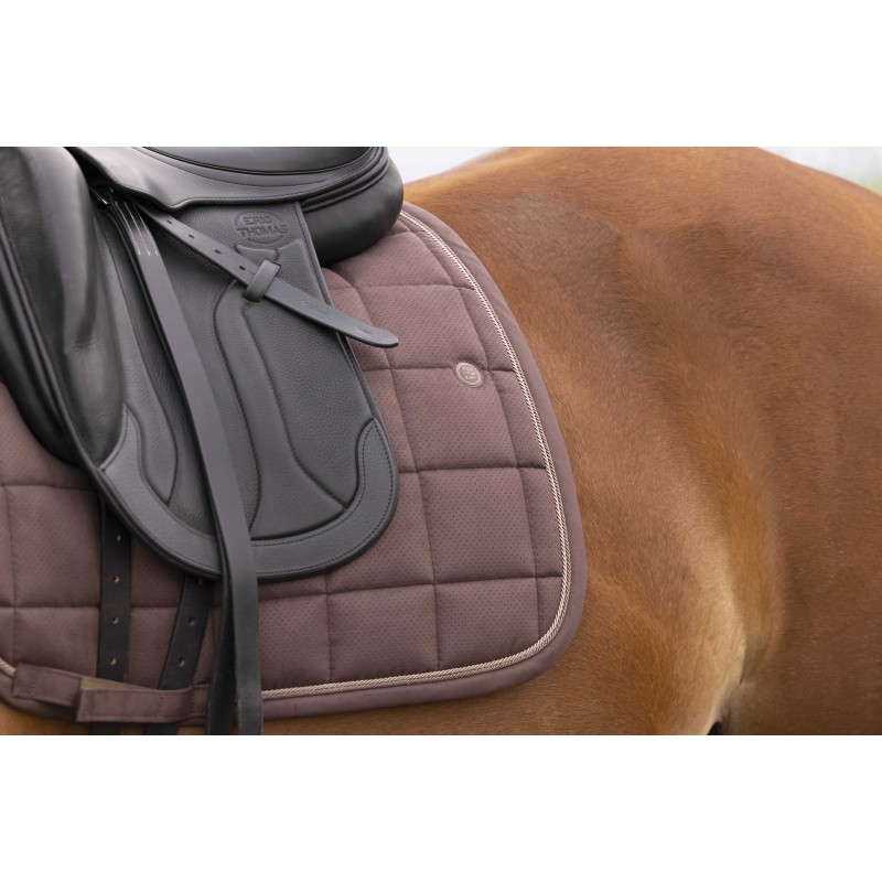 Tapis de selle en tissu effet « peau de pêche » avec motif points découpés au laser.
