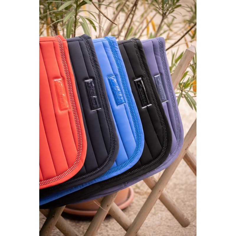 Le tapis Verticali Paddock est composé d’un matelassage bien épais en lignes verticales. Il est également orné d’une double ligne de strass qui lui apporte une touche très girly. Il a une ligne de dos bien dessiné et deux passages de sangle pour augmenter la fixité du tapis sous la selle.