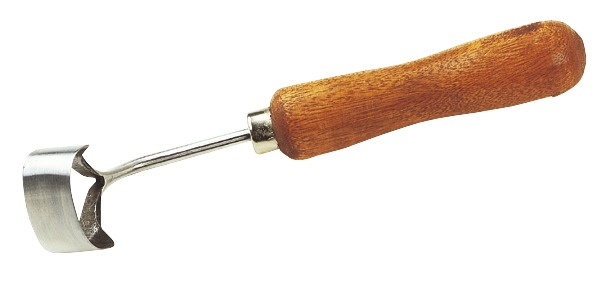 En acier poli avec manche bois. Permet le nettoyage et le parage de la sole.